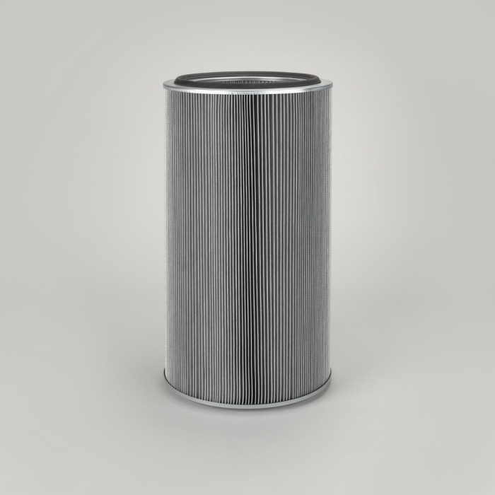 Cartridge Filter with open top end cap and open bottom end cap in Ultra-Web Spunbond Anti-Static, 325 mm outer diameter x 628 mm long including top gasket; Special features: Without earthing cable/spiral glue on the inside of the cartridge and with one strap around the cartridge for Camfil and other brands of cartridge collectors